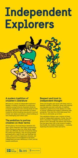 'Independent explorers' exhibition This new exhibition showcases the history and development of children’s literature in Sweden, from the late 1800s until today. It will be available for activities taking place in 2026.