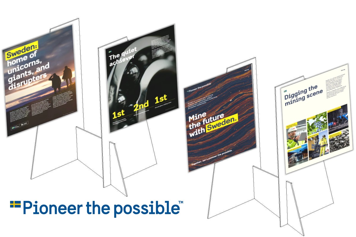 The modular exhibition is focused on Swedish innovations and companies leading the green transition within different sectors. Four intro prints presents Sweden’s strengths in the green and digital transition. Every industry sector has four prints each that can be added based on your event’s focus industries.