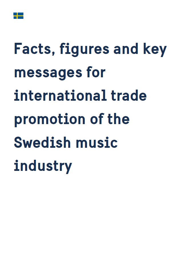 Strategic material for internal use Download document (PDF 116.7 KB) Facts, figures and key messages This document is intended for internal use and contains facts, figures and key messages for international trade promotion of the Swedish music industry.